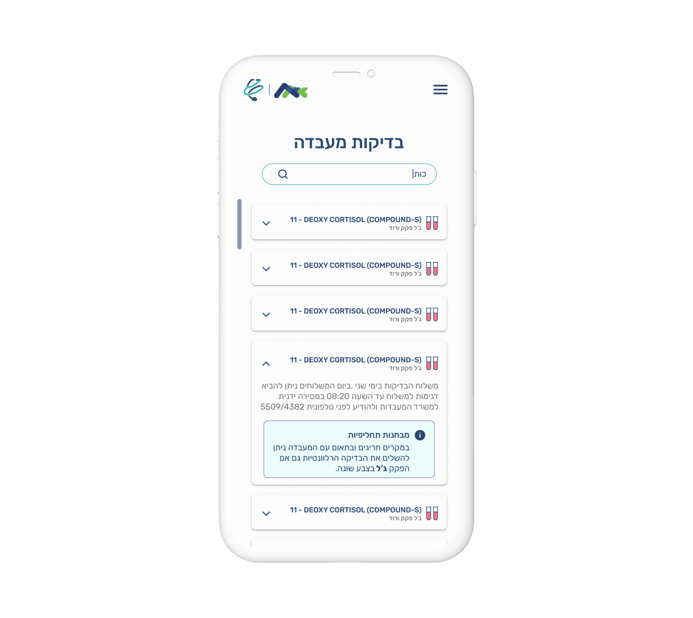 During the design of the Lab Test feature for the Mashlom.me platform, one of the key challenges we faced involved deciding where to place the information about substitute test tubes — a small but critical detail for doctors when the original test tube is unavailable.